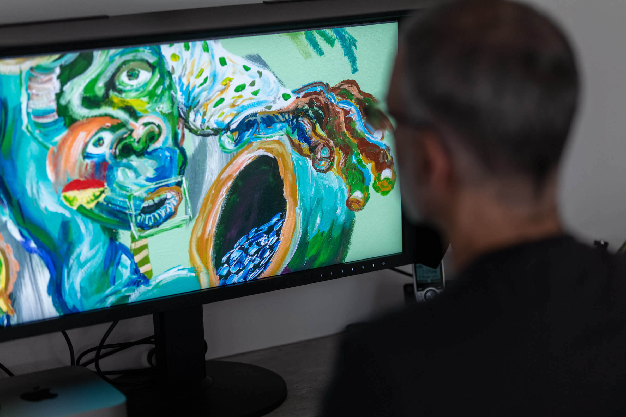 Adjustment and retouching of Cristiano Mangovo's green painting at our studio